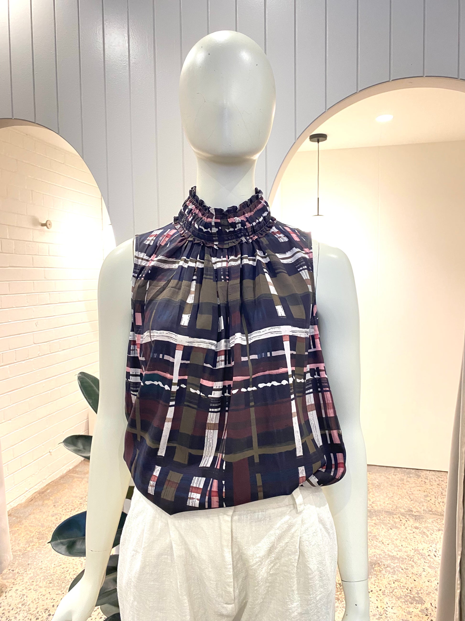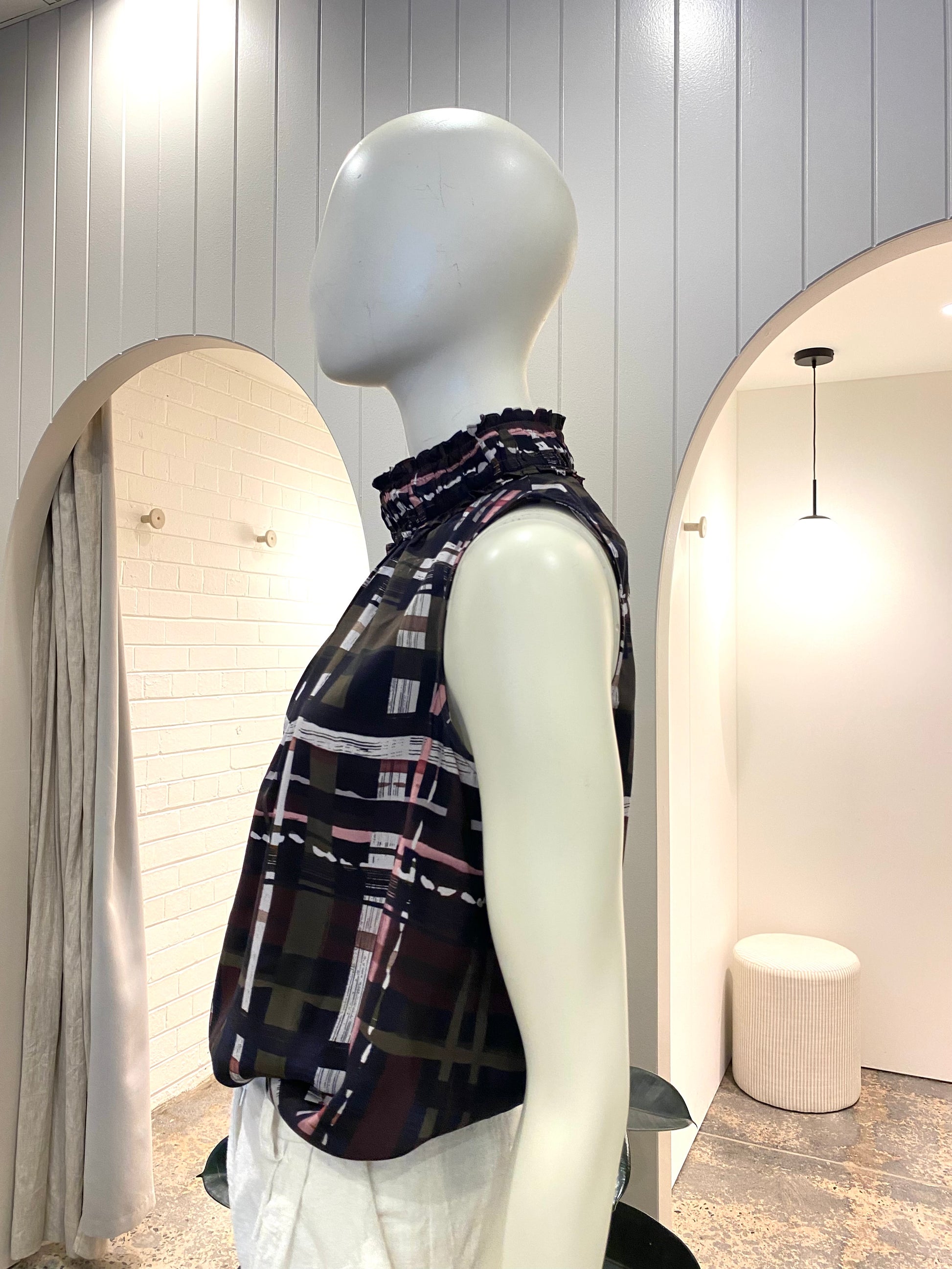 Sally Phillips Silk Check Sleeveless Blouse - Size 10