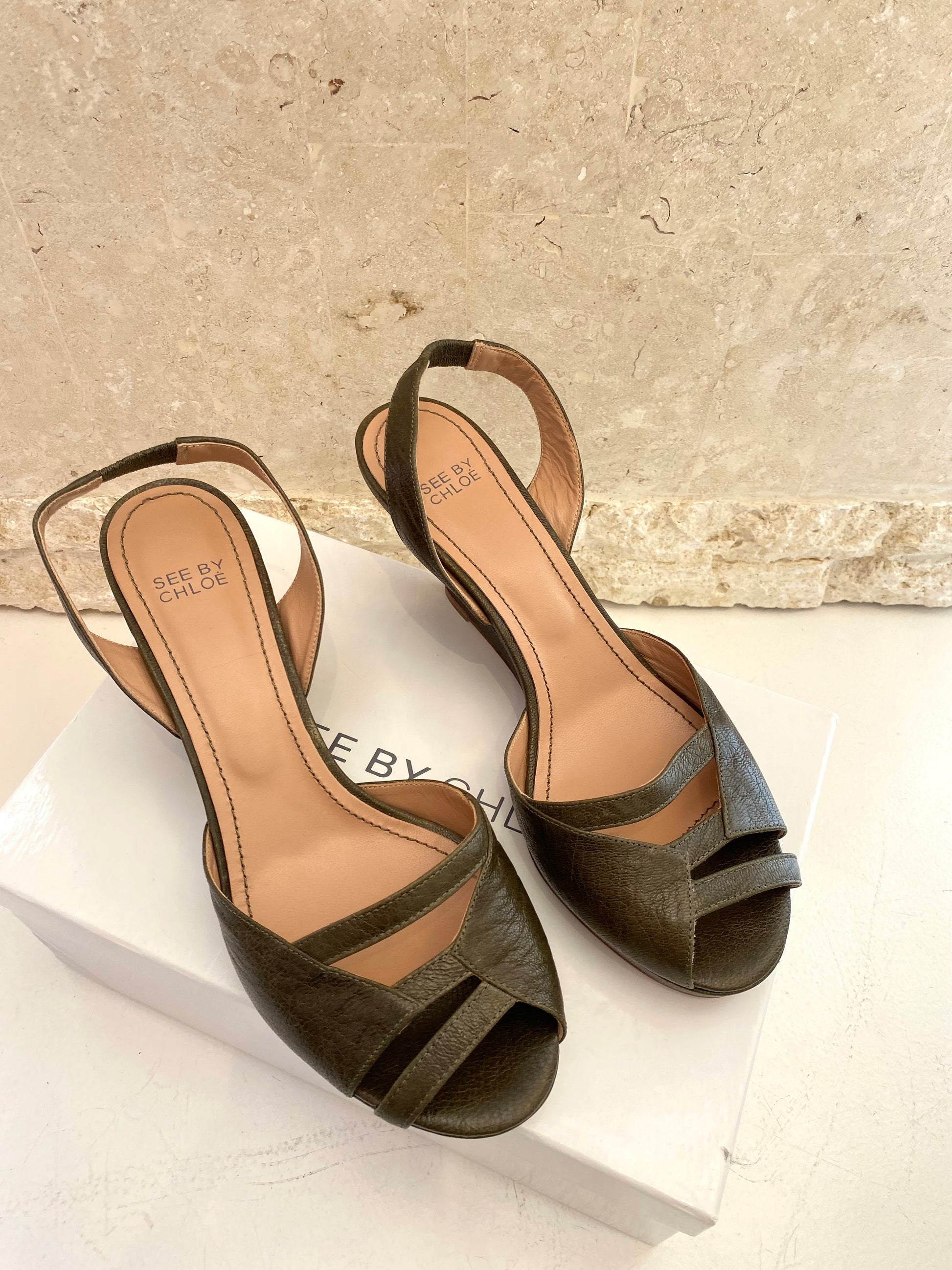 See By Chloe Wedge Sandals in Olive - Size 41
