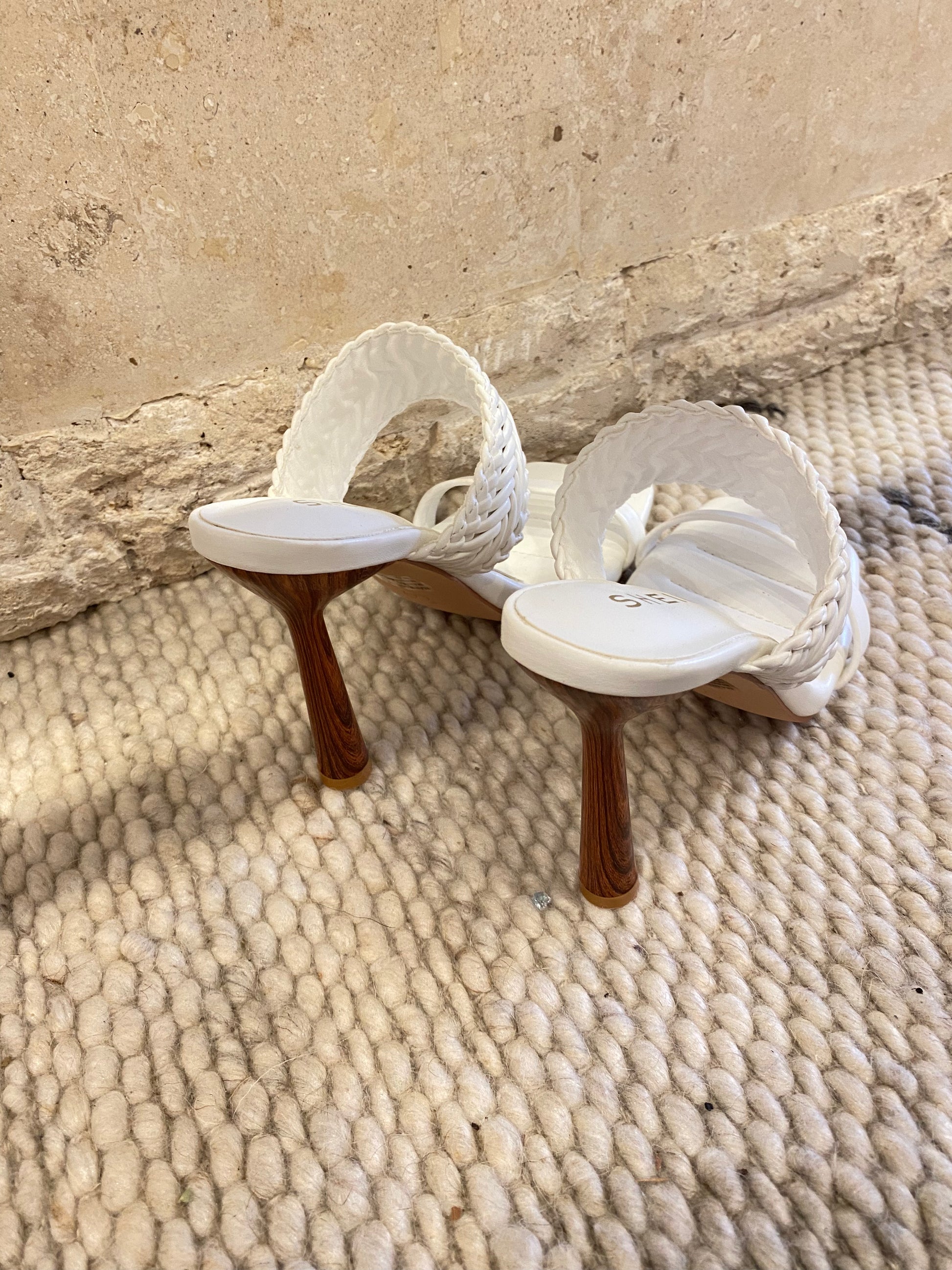 Description : These high heels fro Australian label, Sheike, feature twin woven straps, a contrast timber look 10cm heel and a padded footbed. Perfect for your next formal event.