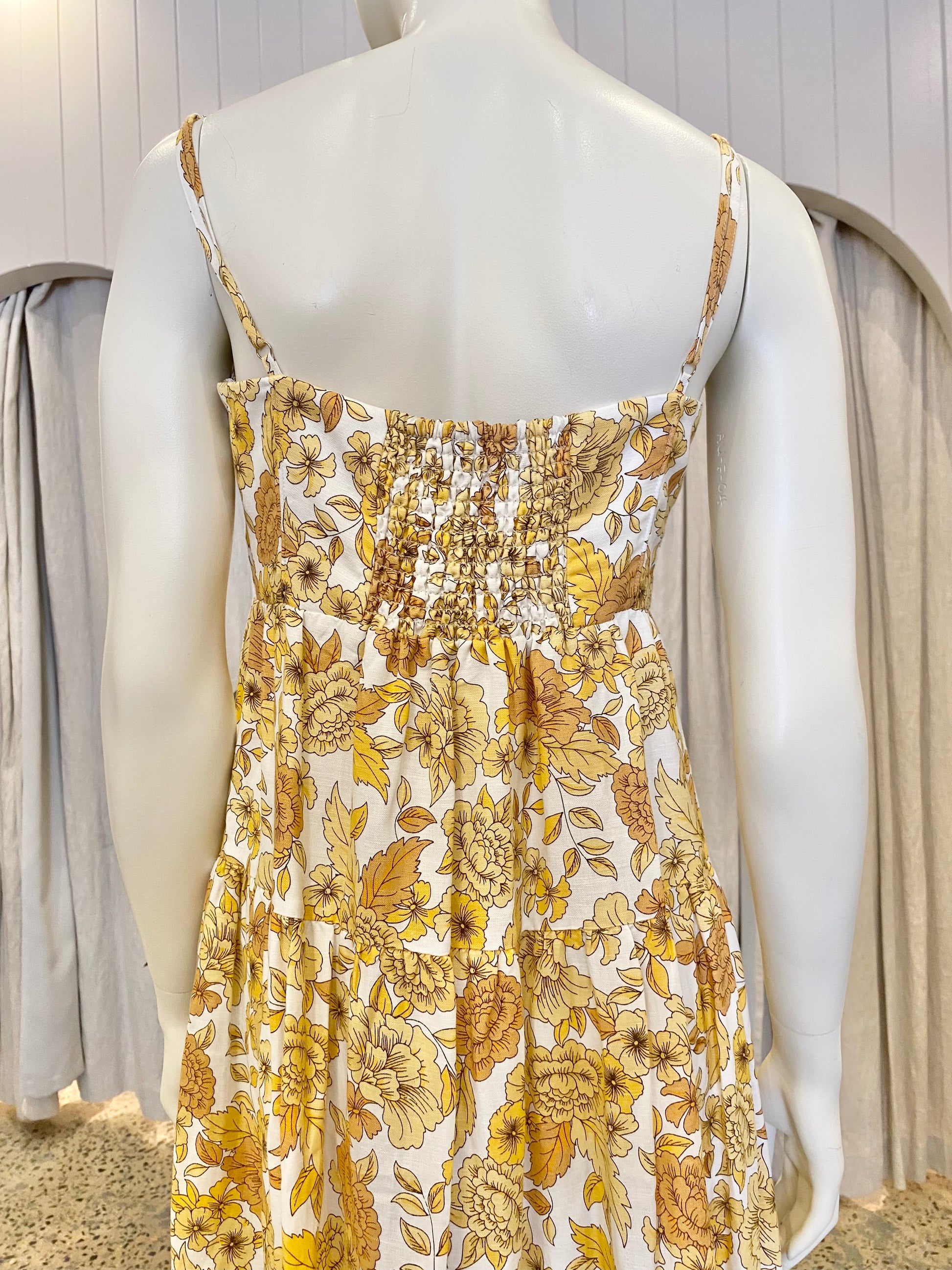 Shona Joy Saffron Shirred Tiered Midi Dress - Size 12