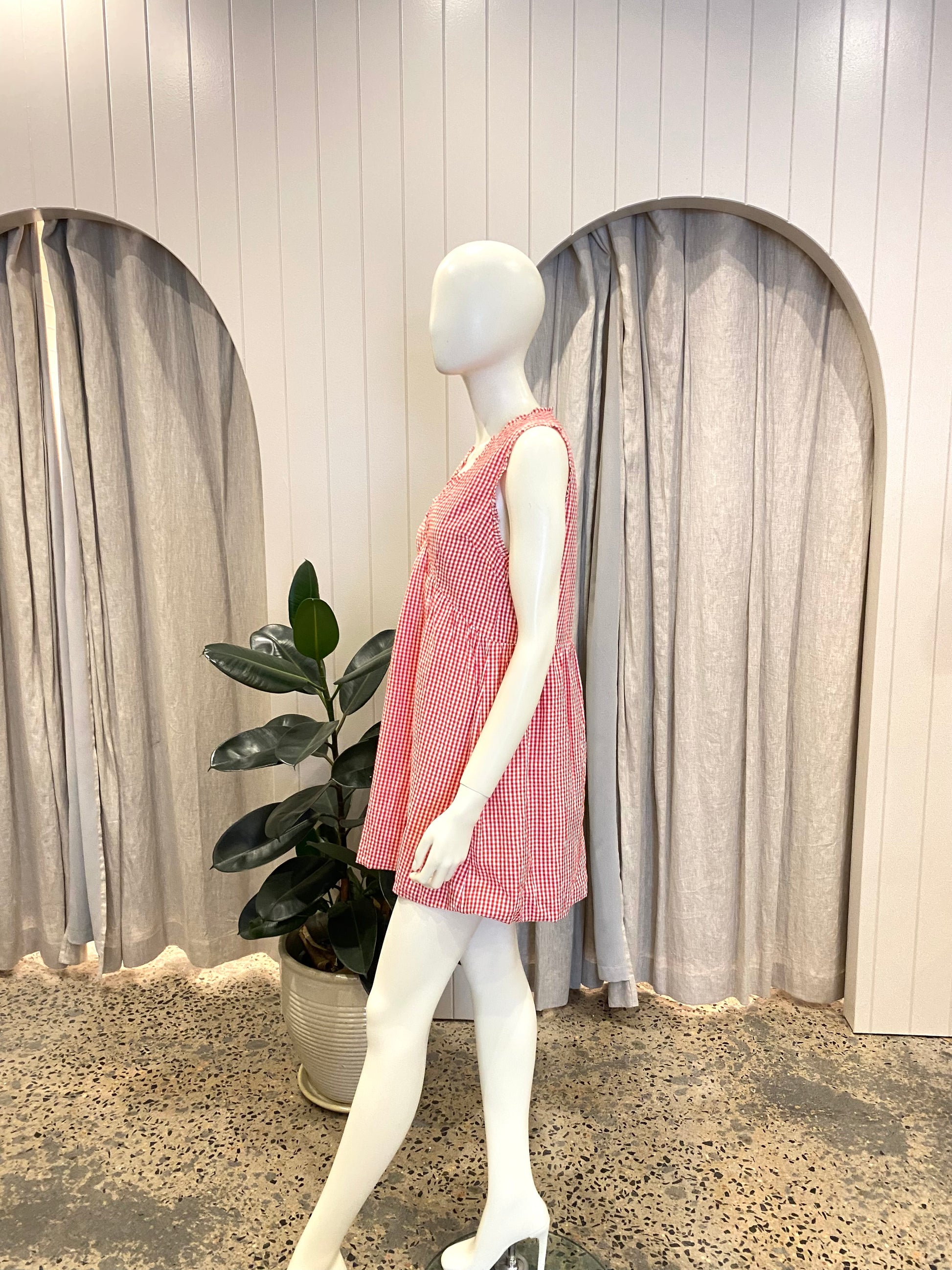 Steele Cecile Mini Dress in Red/White Gingham - Size M (10)