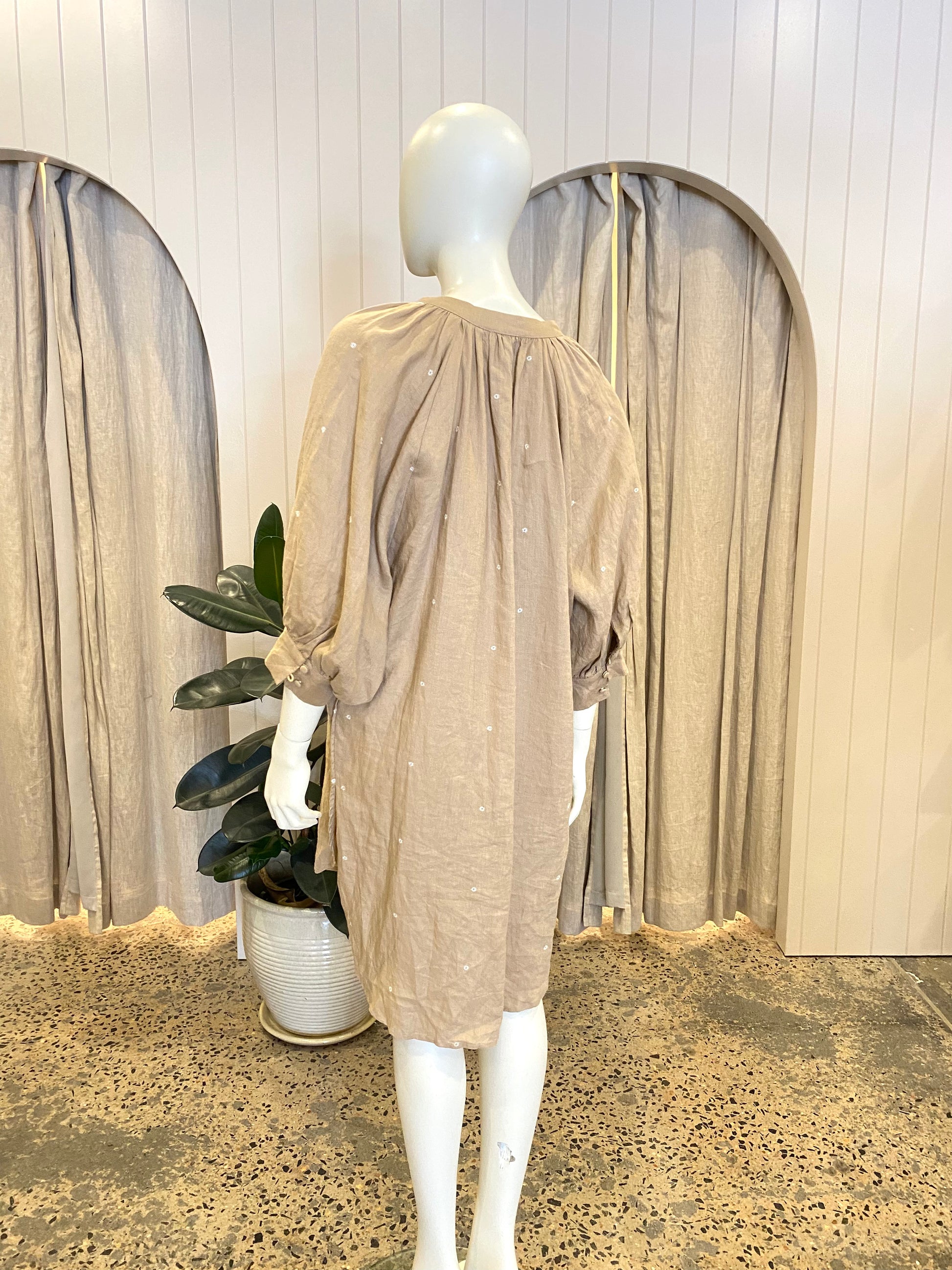 Zoe Kratzmann Beige Linen Midi Dress With White Daises - Size 1 (10/12)