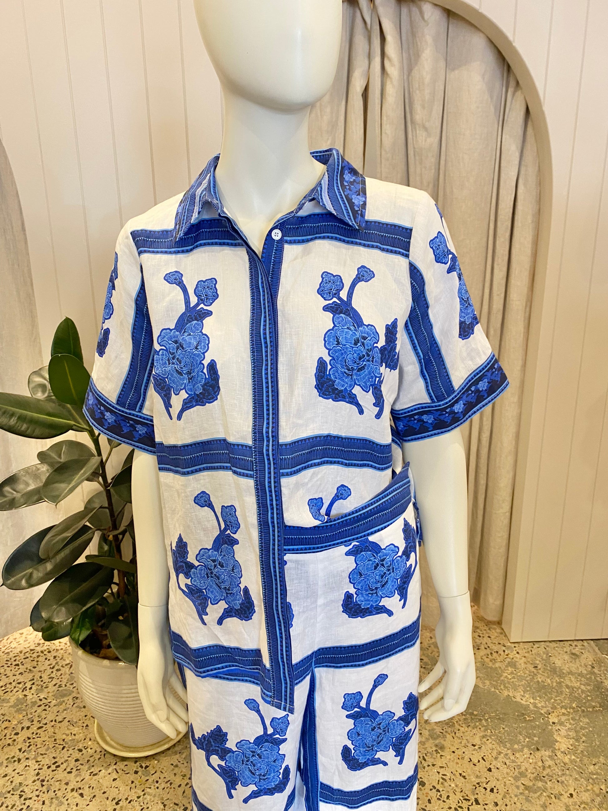 Zoe Kratzmann Blue Azure Collage Pant and Shirt Set BNWT - Size 1 (10/12)