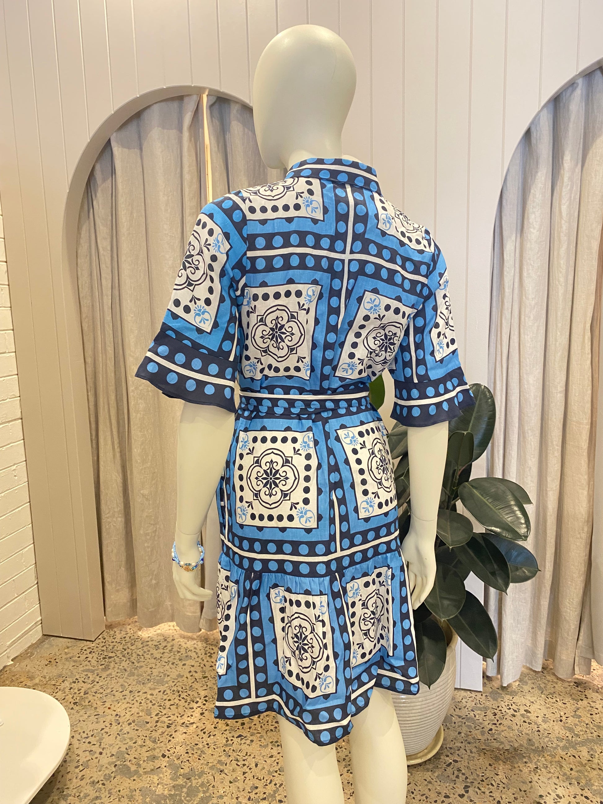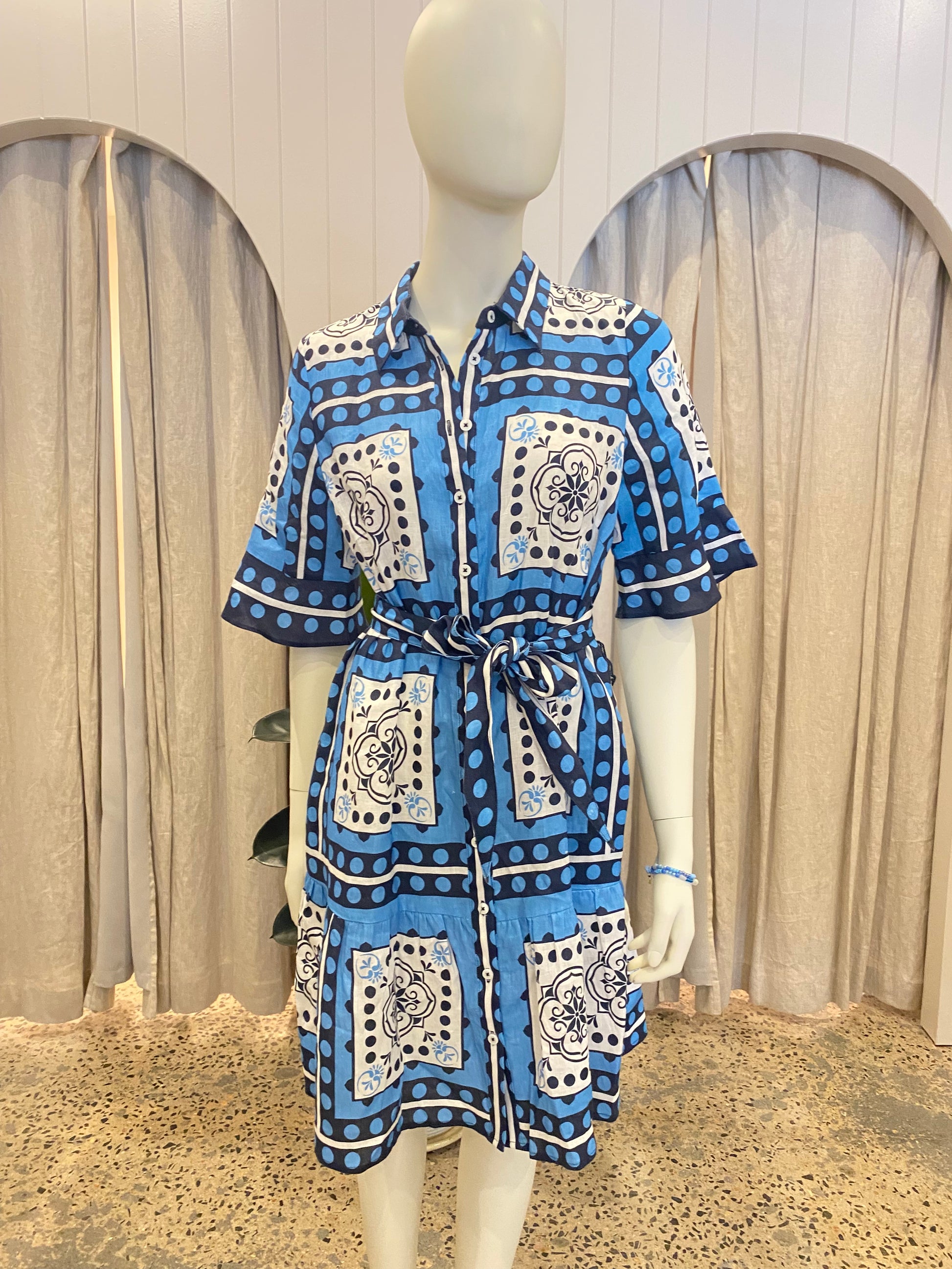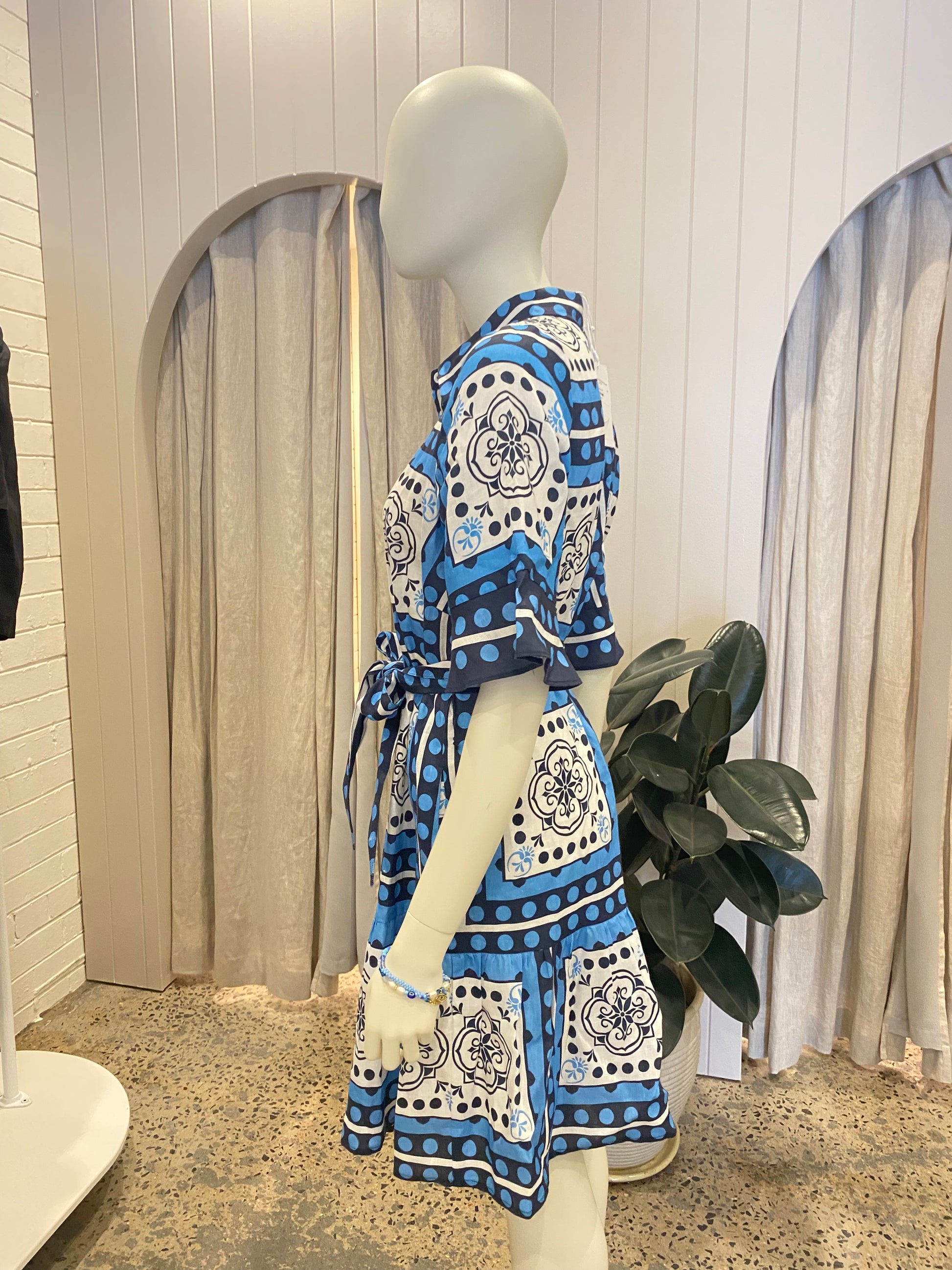 Description : - relaxed silhouette with tiered hem - softly fluted sleeve cuffs - traditional collar - porcelain shell buttons - wide self-tie belt - mini length